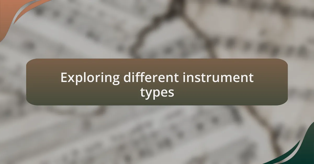 Exploring different instrument types can be an exhilarating journey. I remember the first time I held a violin in my hands; the sleek wood felt both foreign and familiar. The idea of creating delicate melodies captivated me, but I also had to grapple with the realization that it demands patience and practice. Have you ever felt torn between the allure of an instrument and the commitment it requires?