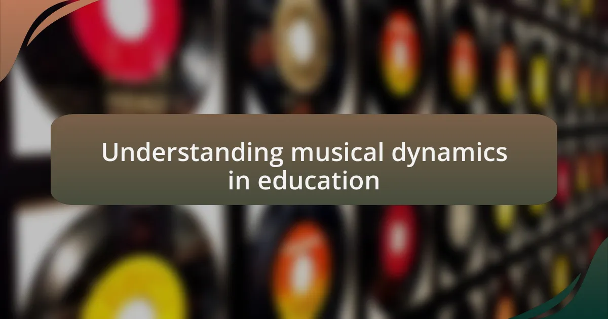 Understanding musical dynamics in education is essential for fostering expressive playing. I recall a time in my music class when we focused on dynamics, transitioning from a soft pianissimo to a powerful fortissimo. It was mesmerizing to see how students responded emotionally, learning not just to play notes, but to convey feelings through volume and intensity.