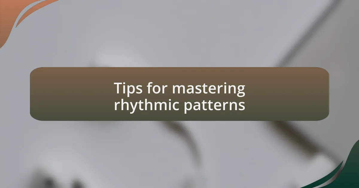 To truly master rhythmic patterns, I’ve found that practicing with a metronome can be incredibly beneficial. When I first embraced this tool, I discovered that it not only helped me keep time but also allowed me to experiment with different tempos. Have you ever felt the satisfaction of locking in with a steady pulse? That precision can open up new dimensions in your playing.